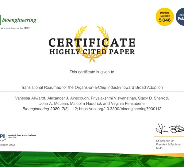 Vanessa Allwardt et al. Receive a Highly Cited Paper Award for their Organ-on-a-Chip Review in Bioengineering:
