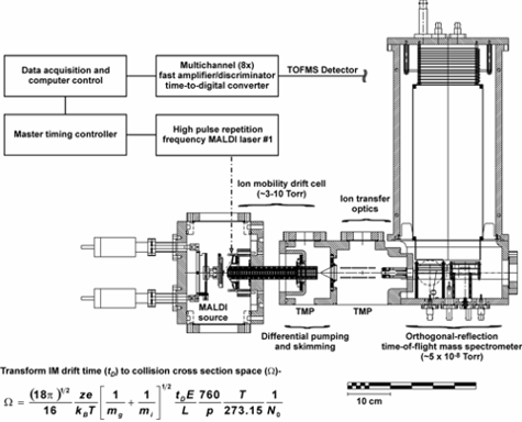 We have developed a reduced pressure, drift-time ion mobility mass spectrometer (DTIM-MS). The ionization source, which is able to support both MALDI and ESI, is interfaced directly to the drift cell. In the drift cell the analyte undegoes collisions with helium gas at approximately 3-10 Torr. The sample is then pulsed into a reflectron o-TOF mass spectrometer, resulting in two-dimensional (i.e.mobility versus m/z) spectra.