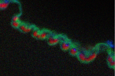 Basement membrane is an important sheet-like extracellular matrix that mechanically stabilizes epithelia, muscles, and many other tissues. Basement membranes are damaged during tumor metastasis, kidney failure, and tissue wounds, and repair is critical for restoring tissue function. We are using several models to analyze basement membrane repair, including mechanical pinch wounds in larvae and feeding adult flies a matrix damaging agent. We find that basement membrane is repaired rapidly, forms a scar at the site of damage, and uses mechanisms that are a bit different from the mechanisms of normal basement membrane embryonic development. These studies suggest that basement membranes are significantly more dynamic than previously assumed. (Kimberly LaFever, Elkie Peebles, Can Yilgor, Bryant Humphries)